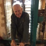 Cliff was never entirely happy with retention of the rather poorly toned 1603 Hugh Watts tenor that was too thin in the crown for tuning, and he had the foresight to design the new frame to incorporate a larger more modern tenor bell in case funds ever permitted. We quite often talked about it, usually after a few pints in the pub following a peal when it always seemed a lot more possible! So, when in 2017 and with the help of David Kelly and the Keltek Trust, I finally identified a couple of suitable bells to replace the old tenor and 7th, Cliff was first to enthusiastically embrace the idea. We ultimately decided on a ‘second bite at the cherry’ with a more extensive scheme to improve the dynamics and tonal qualities of the bells, and in 2019 the entire ring was remodelled. Cliff, by then in his late 80s was in his element; once again actively involved in removing and transporting the bells, painting the frame, and then the rehanging. I think in some ways it all gave him a new lease of life, although we were rather cautious about informing his daughters about quite how extensively and physically involved, he actually was!