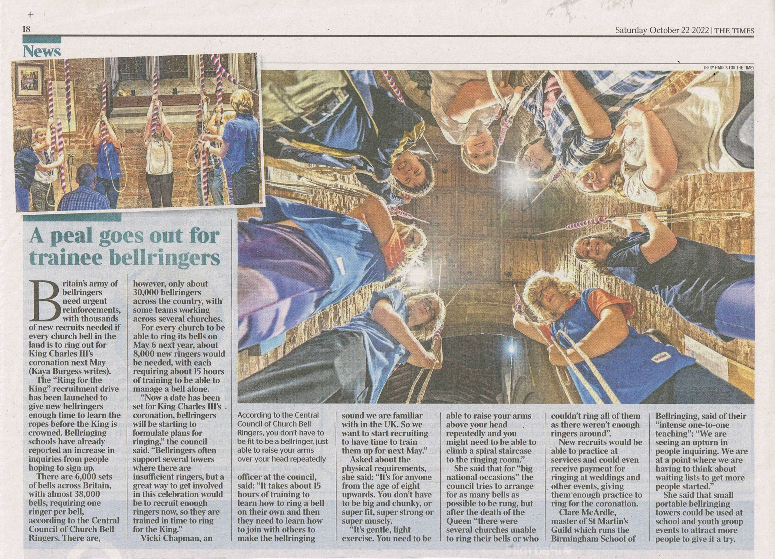 References to this national appeal for new bellringers appeared in the media, including on Radio 4 and this article in The Times on Saturday 22 October: